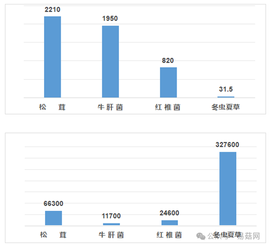 据彭卫红研究员介绍,2022年四川Manbetx体育手机版推荐A9版本产值前10位的种类中,毛木耳、平菇、香菇等传统品种依然占据主导地位,而冬虫夏草和松茸则以其珍稀性和高价值分别位列第4和第10位,产值分别超过32亿元和6.6亿元。在野生Manbetx体育手机版推荐A9版本领域,松茸、牛肝菌、红椎菌、冬虫夏草等产量较高,其总产值超过43亿元,占据了四川Manbetx体育手机版推荐A9版本总产值的显著份额,约为14.6%。
