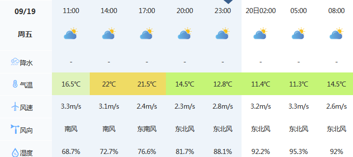 9月19日 气温 11℃~22℃