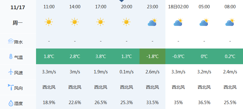 11月17日 气温 -2℃~4℃