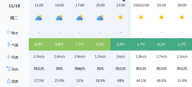 11月18日 气温0℃-10℃