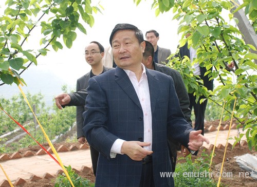 仙人嵌村黄金梨园,成片的梨树在阳光照射下显得格外嫩绿。范申华深入梨树丛中,仔细察看梨园内高效节水灌溉工程及保温保湿地膜覆盖情况。他指出,地膜覆盖要规范化,梨树管理要增加科技含量,促进梨树稳健生长、高产稳产。