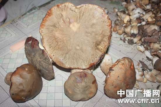 据周女士介绍,她是和家人上山采摘“大腿蘑”时,在一片树林里发现了这簇大腿蘑菇王的。当时只见有一个很大饱满厚实“大腿蘑”被4个呈深棕色小“大腿蘑”簇拥着,成扇形状。最大那个“大腿蘑”盖上直径有20多厘米,高21厘米,回家用秤一称,重量竟有1公斤多。周女士说,由于那片树林很少有人去,再加上前段时间的连阴雨,所以才长出这个大腿蘑菇王,但这么大的“大腿蘑”实在是少见。