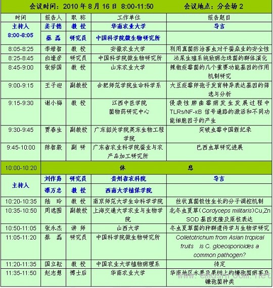 2010年中国菌物学会学术年会:病原真菌和虫生真菌分会场