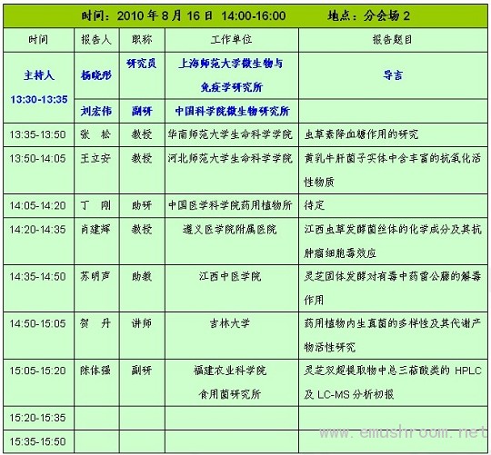 2010年中国菌物学会学术年会:药用真菌和次生代谢分会场