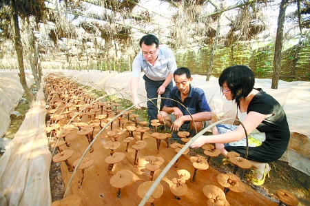 9月6日,确山县石滚河镇农技人员在大棚里向灵芝种植户传授灵芝的种植管理技术。近年来,确山县发展特色农业,全县3000多户农民大力培植香菇、灵芝等菌类,年产值8000多万元,产品出口到日本、韩国等国家。
