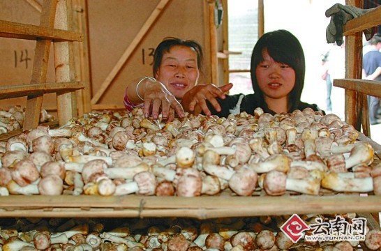 仲秋时节,走进龙陵农村,随处可见散布在田野上的一个个姬松茸种植大棚里,农民们有的在采摘姬松茸,有的在晾晒加工,一片丰收景象。