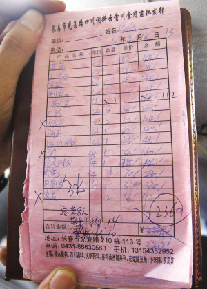 记者在加工间找到了一份账本,账本上栏头写着“长春市光复路四川调料云贵川Manbetx体育手机版V17版本发布.官网安卓网.香港批发部”,工人说这就是门市店的全名。账本上写有该批发部的经营主项有:清水蘑菇、四川调料、火锅药料、喜得莱香精系列、宏斌酸豆角、小米辣、罗汉笋。