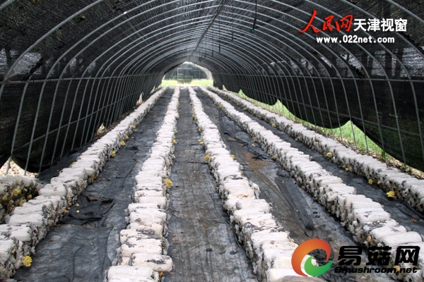 黄金菇种植大棚。天津静海县林海循环经济示范区现有林下经济4500亩、设施农业和特色农业4455亩。(摄影:孔飞)