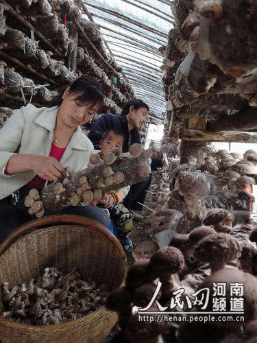 10月18日,卢氏县朱阳关镇漂池村金小琴在采收成熟的香菇。金秋十月,正是秋栽香菇收获的时节,豫西卢氏山区的群众正忙着收香菇、晒香菇、卖香菇,乡村处处都是农民们增收致富的繁忙景象。(卢氏县委宣传部 程专艺摄)