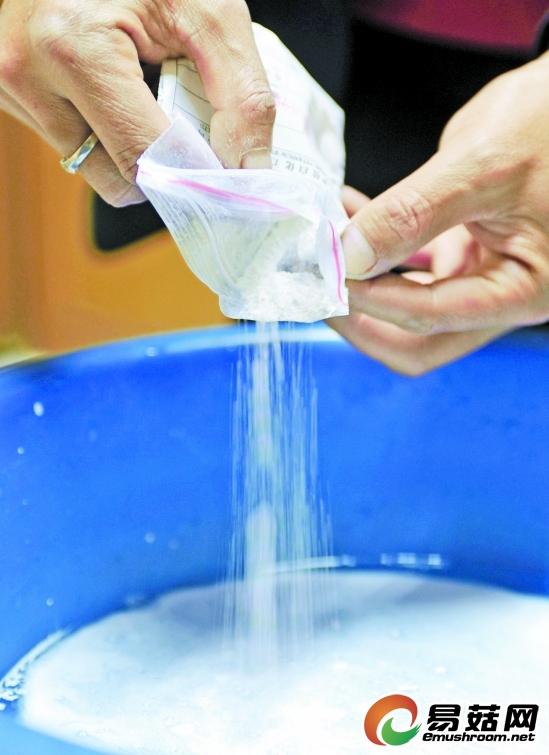 如果计算成本,2公斤水至少可以重复使用10次~15次,每次至少可“美容”2公斤蘑菇。而据卖家说,每10克液态增白剂一般可兑50公斤水,每10克粉状增白剂一般可兑40公斤水。