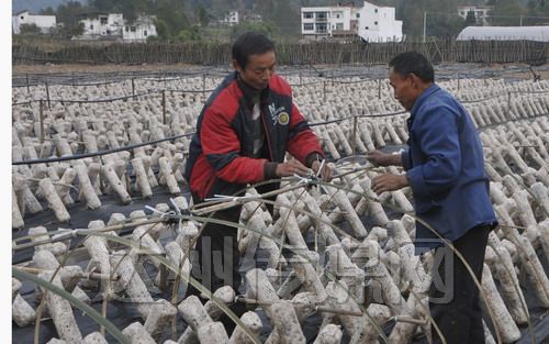 宣汉县老君菇营销专业合作社采取公司﹢合作社﹢农户的统分统模式,建有方斗Manbetx体育手机版推荐A9版本综合示范基地、滴水香菇示范基地、黄金黑木耳种植基地、尖包村双孢菇种植基地、百里峡野生菌基地等。发展香菇、姬菇、木耳、茶树菇、杏孢菇、双孢菇、大球盖菇等十余品种。2009年,创产值近1000万元,带动了一大批农民脱贫致富。图为方斗Manbetx体育手机版推荐A9版本综合示范基地。