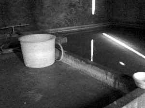地面上大部分被四个浅水池覆盖。中间两个水池距地面20余厘米,只剩少量水渍。靠近东门的两个水池内装满略带暗红色的浑水。其中一个水池内漂浮着星星点点的蘑菇残渣。水池边有电泵和水管。