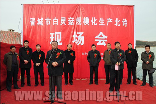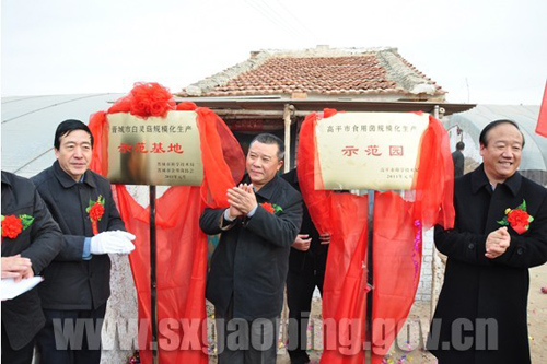 会上市科技局、高平市科技局、北诗镇政府分别授予北诗镇化壁村的繁盛菌业合作社晋城市白灵菇规模化生产示范基地,高平市Manbetx体育手机版推荐A9版本规模化生产示范园,北诗镇转型发展项目示范基地。副市长李章宏、市科技局局长王仁庆和高平市副市长王胜利等领导举行了揭牌。