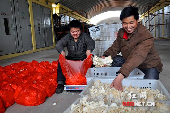 3月正是烟叶育苗时期,烤房处于空闲状态。不过,在长沙市宁乡县金醇烟叶合作社“三民——玉山”烟叶工场的烤房可没闲着,里面放满了塑料袋,袋子里生长着鲜嫩的金针茹。正在工场包装金针菇的烟农喜形于色:“从去年9月收完烟叶后,我们就用空出来的烤房种金针菇。金针菇市场价格很不错,一公斤可以卖到6块钱。”