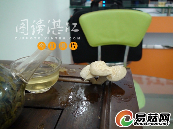 6月20日中午,笔者在南湖国旅霞山文明东部办事时,该社的黄德荭副老总忽然指着他们办公室中喝工夫茶的茶几说:“你看茶几上长了什么东西!”而笔者走近一看:好家伙!茶几上长了一棵蘑菇!
