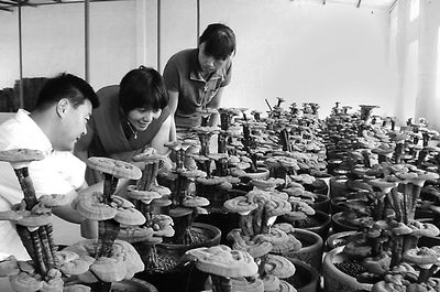今年,山东省东营市东营区牛庄镇麒麟Manbetx体育手机版推荐A9版本种植基地与山东省农科院共同研发的观赏灵芝新品种——赤灵芝2号培育成功,吸引了众多消费者上门购买。该灵芝外形壮硕,颜色艳丽,目前每盆可卖到2000多元。图为7月17日该食用菌种植基地工作人员正在观测赤灵芝生长情况。 (谭长青 摄)