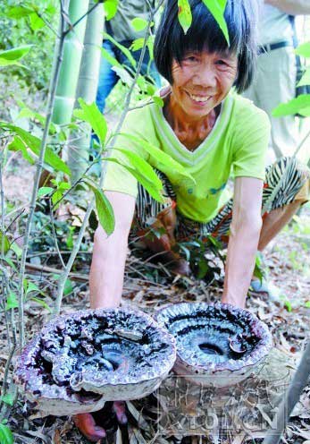 “我上山采草药、捡蝉蜕十多年了,第一次见到这么大的灵芝,”65岁的周翠英说,从十多年前开始,她每天都要上山采药,也曾捡到过为数不多的小灵芝,但第一次遇到两株这么大的。