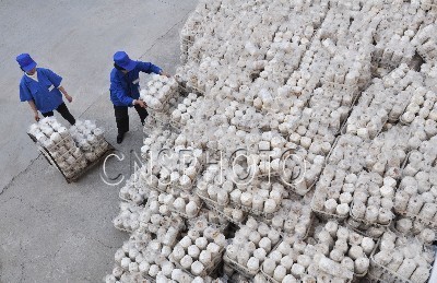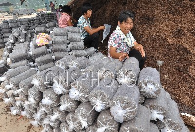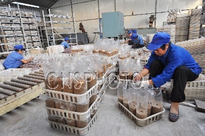 2011年9月26日,工人在芳绿Manbetx体育手机版推荐A9版本车间内装菌袋。山东邹平县芳绿农业科技有限公司在Manbetx体育手机版推荐A9版本生产开发过程中,依靠农业科技发展“秸秆栽培珍稀菇蕈类现代工厂化生产与农村产业化集成示范”生产,在公司厂区建有工厂化菌种、菌袋生产车间以及智能化出菇车间38000平方米,生产30多个品种的珍稀菇蕈,年产鲜菇1.2万吨,优质菌种菌袋8000万个;农村Manbetx体育手机版推荐A9版本种植面积达2万亩,带动该县11个乡镇6000户的农民发展Manbetx体育手机版推荐A9版本生产,年消耗农作物秸秆以及农副产品下脚料8万余吨,辐射区内农民增收1.5亿元,带动农村万名妇女实现就业增收。