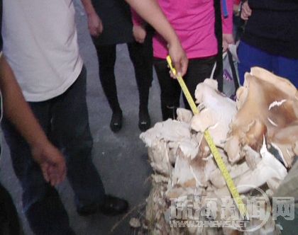 在潘先生家楼下,记者看到,这个巨型蘑菇要两个人合力才能抬起来,放到秤上一称,围观的市民又是一阵哗然,大蘑菇体重23公斤,这还不算被贪吃的邻居掰去炖汤的那部分,潘先生说,如果是原来完整的一株至少在五十斤左右。再找来卷尺一量,好家伙,身高72厘米,最宽的地方有62厘米。
