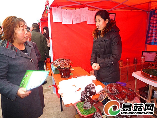 “全国第七届菌需物资展销会”上展出的灵芝盆景吸引众多参观者的目光。