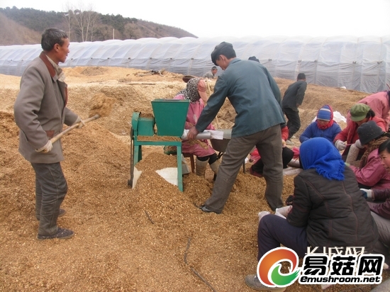 菌农在装菌袋。尹秀敏 摄