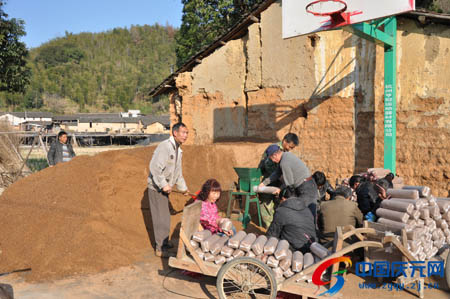 眼下正是种植灰树花的季节。在庆元县黄田镇陈边村,记者看到三五成群的农民在路旁、农舍等地忙着生产灰树花菌棒。据了解,黄田镇今年共种植了1600多万袋灰树花,产值可达4800多万元。