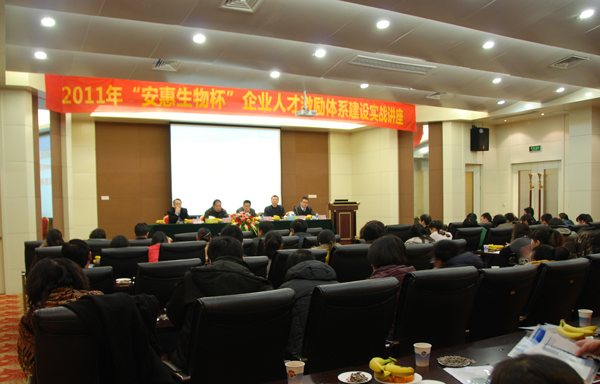 12月30日,安惠和融会议厅里其乐融融,2011年“安惠生物杯”企业人才激励体系建设实战讲座暨南通市人力资源职业经理人协会年会在这里举行,来自全市企事业单位的六十余名人力资源职业经理人汇聚一堂,共话发展。