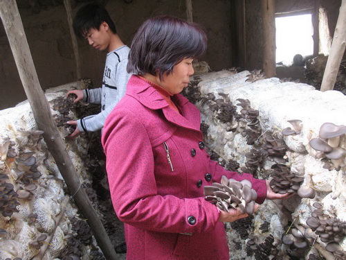 2月20日,新疆生产建设兵团农八师一四三团团十八连女工李英母子正忙着釆收头茬蘑菇。李英在去年入冬前忙完地里活后便开始培育蘑菇,目前,她培育的1万袋头茬蘑菇巳给她帶来4万多元的纯收入。后边还要釆收二茬、三茬、四茬……,将还有一笔可观的放入。图为李英母子釆收蘑菇场景。