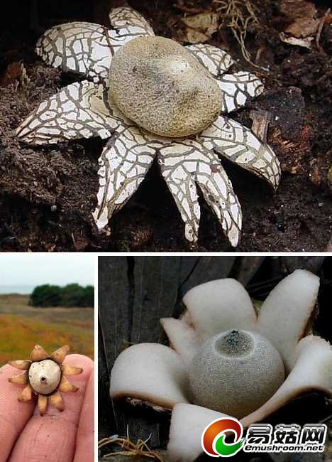 地星尘菌蘑菇的学名是Geastrum triplex,它是一种尘菌,生长在一定海拔高度和地点。它看上去像是刚从地面上冒出来的,不同寻常的蘑菇外形边缘呈放射状,中心衬托起一个子实体(真菌的一种器官),当风吹过时会传播子实体上的孢子。