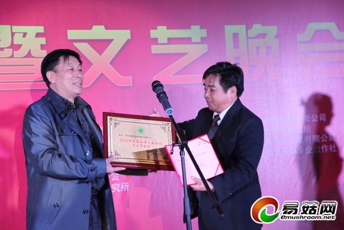 韩省华先生为“湖北森源生态科技股份有限公司”颁发“2012年首届全国天麻会议”突出贡献奖