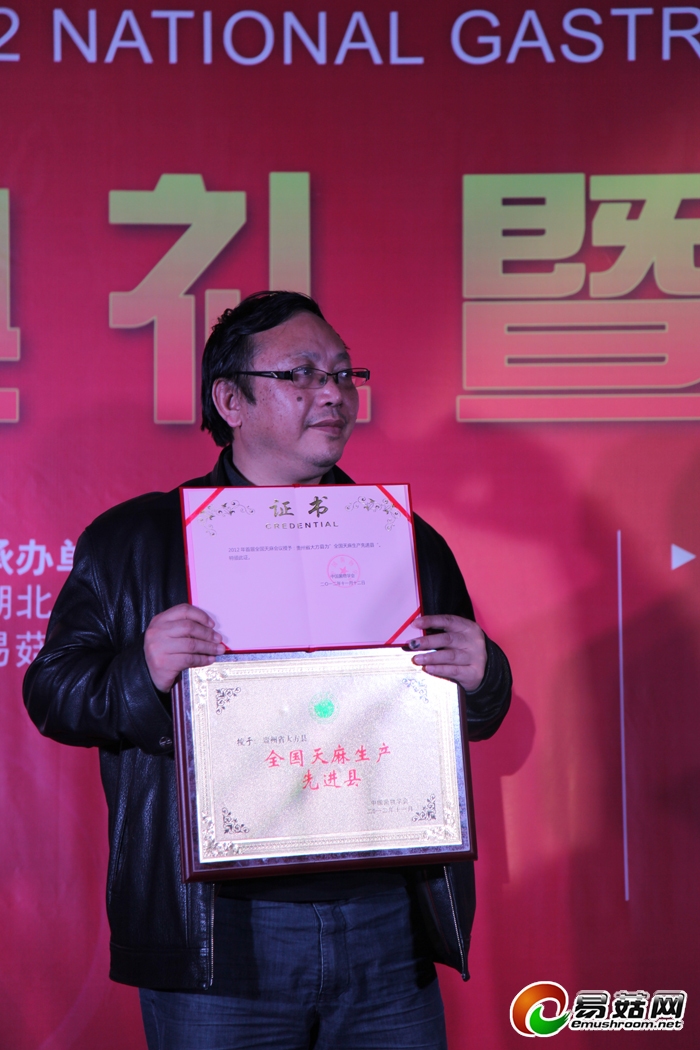 12日晚,全国天麻会议颁奖典礼暨文艺晚会邀请了三峡电视台知名节目主持人王姿领衔主持。颁奖典礼中,先后颁授了“2012年首届全国天麻会议”突出贡献奖、“2012年首届全国天麻会议”指定产品、全国天麻生产先进工作者、全国天麻生产先进单位、全国天麻生产先进县(基地),其中,还特别颁授原中国医学科学院药用植物研究所徐锦堂教授、原中国科学院昆明植物研究所周铉教授为“中国天麻研究终生成就奖”,宜昌三峡旅游职业技术学院王绍柏教授为“全国天麻产业发展突出贡献奖”,对这些在我国天麻科研和生产中作出卓越贡献的专家予以表彰。