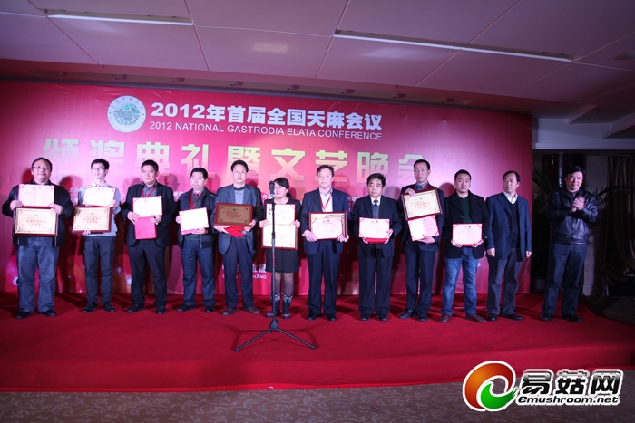 12日晚,全国天麻会议颁奖典礼暨文艺晚会邀请了三峡电视台知名节目主持人王姿领衔主持。颁奖典礼中,先后颁授了“2012年首届全国天麻会议”突出贡献奖、“2012年首届全国天麻会议”指定产品、全国天麻生产先进工作者、全国天麻生产先进单位、全国天麻生产先进县(基地),其中,还特别颁授原中国医学科学院药用植物研究所徐锦堂教授、原中国科学院昆明植物研究所周铉教授为“中国天麻研究终生成就奖”,宜昌三峡旅游职业技术学院王绍柏教授为“全国天麻产业发展突出贡献奖”,对这些在我国天麻科研和生产中作出卓越贡献的专家予以表彰。