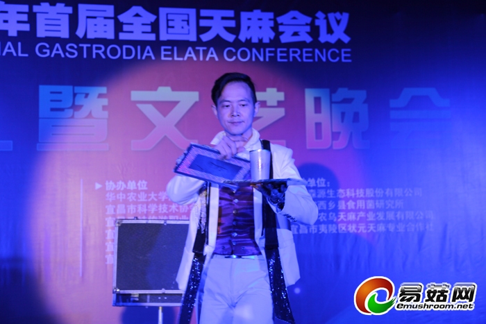 12日晚,全国天麻会议颁奖典礼暨文艺晚会邀请了三峡电视台知名节目主持人王姿领衔主持。颁奖典礼中,先后颁授了“2012年首届全国天麻会议”突出贡献奖、“2012年首届全国天麻会议”指定产品、全国天麻生产先进工作者、全国天麻生产先进单位、全国天麻生产先进县(基地),其中,还特别颁授原中国医学科学院药用植物研究所徐锦堂教授、原中国科学院昆明植物研究所周铉教授为“中国天麻研究终生成就奖”,宜昌三峡旅游职业技术学院王绍柏教授为“全国天麻产业发展突出贡献奖”,对这些在我国天麻科研和生产中作出卓越贡献的专家予以表彰。