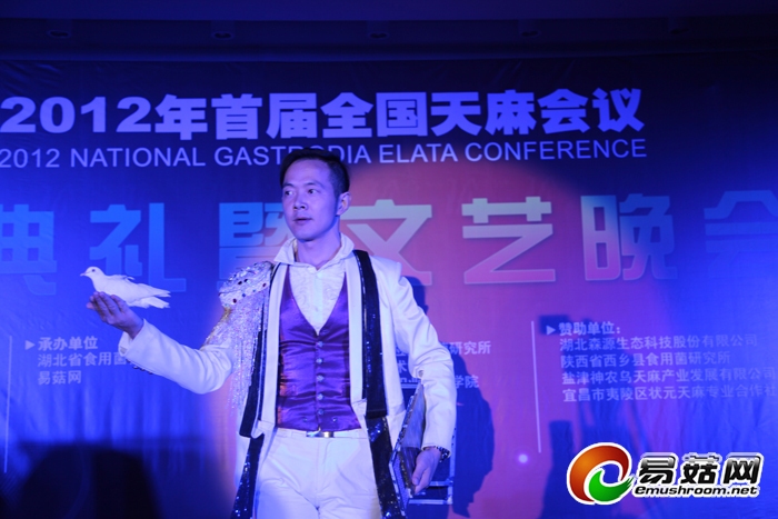 12日晚,全国天麻会议颁奖典礼暨文艺晚会邀请了三峡电视台知名节目主持人王姿领衔主持。颁奖典礼中,先后颁授了“2012年首届全国天麻会议”突出贡献奖、“2012年首届全国天麻会议”指定产品、全国天麻生产先进工作者、全国天麻生产先进单位、全国天麻生产先进县(基地),其中,还特别颁授原中国医学科学院药用植物研究所徐锦堂教授、原中国科学院昆明植物研究所周铉教授为“中国天麻研究终生成就奖”,宜昌三峡旅游职业技术学院王绍柏教授为“全国天麻产业发展突出贡献奖”,对这些在我国天麻科研和生产中作出卓越贡献的专家予以表彰。