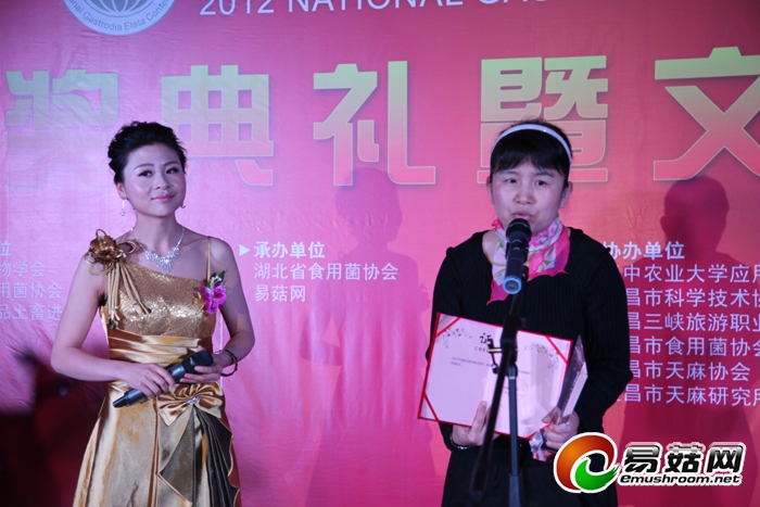 12日晚,全国天麻会议颁奖典礼暨文艺晚会邀请了三峡电视台知名节目主持人王姿领衔主持。颁奖典礼中,先后颁授了“2012年首届全国天麻会议”突出贡献奖、“2012年首届全国天麻会议”指定产品、全国天麻生产先进工作者、全国天麻生产先进单位、全国天麻生产先进县(基地),其中,还特别颁授原中国医学科学院药用植物研究所徐锦堂教授、原中国科学院昆明植物研究所周铉教授为“中国天麻研究终生成就奖”,宜昌三峡旅游职业技术学院王绍柏教授为“全国天麻产业发展突出贡献奖”,对这些在我国天麻科研和生产中作出卓越贡献的专家予以表彰。
