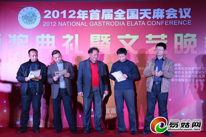 12日晚,全国天麻会议颁奖典礼暨文艺晚会邀请了三峡电视台知名节目主持人王姿领衔主持。颁奖典礼中,先后颁授了“2012年首届全国天麻会议”突出贡献奖、“2012年首届全国天麻会议”指定产品、全国天麻生产先进工作者、全国天麻生产先进单位、全国天麻生产先进县(基地),其中,还特别颁授原中国医学科学院药用植物研究所徐锦堂教授、原中国科学院昆明植物研究所周铉教授为“中国天麻研究终生成就奖”,宜昌三峡旅游职业技术学院王绍柏教授为“全国天麻产业发展突出贡献奖”,对这些在我国天麻科研和生产中作出卓越贡献的专家予以表彰。