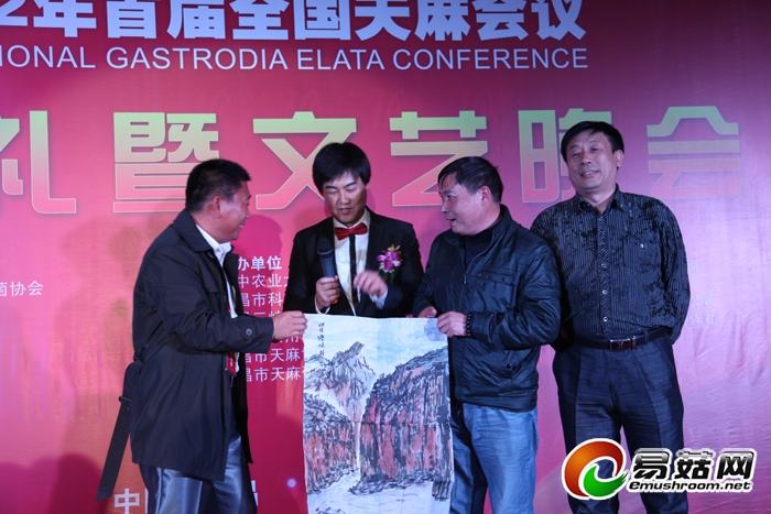 12日晚,全国天麻会议颁奖典礼暨文艺晚会邀请了三峡电视台知名节目主持人王姿领衔主持。颁奖典礼中,先后颁授了“2012年首届全国天麻会议”突出贡献奖、“2012年首届全国天麻会议”指定产品、全国天麻生产先进工作者、全国天麻生产先进单位、全国天麻生产先进县(基地),其中,还特别颁授原中国医学科学院药用植物研究所徐锦堂教授、原中国科学院昆明植物研究所周铉教授为“中国天麻研究终生成就奖”,宜昌三峡旅游职业技术学院王绍柏教授为“全国天麻产业发展突出贡献奖”,对这些在我国天麻科研和生产中作出卓越贡献的专家予以表彰。