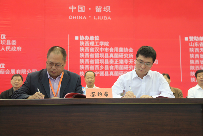 留坝县委常委、常务副县长寇荣峰与陕西核工业集团天然谷有限公司总经理李雪峰签订《中药材产业化建设框架协议》。