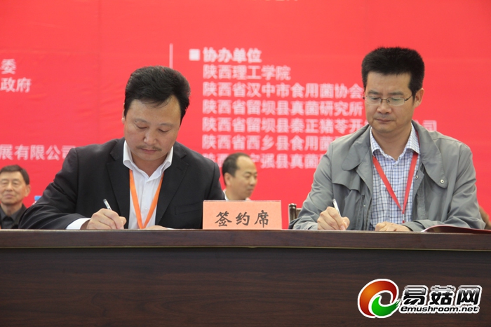 留坝秦正猪苓开发有限公司董事长殷书学与西安斯迈尔医药工贸有限公司总经理李强签订《留坝县猪苓干品、种子供应协议》