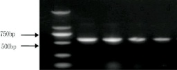 转化子通用引物PCR鉴定注:M为DNAMarkerDL2000;a、b、c、d为菌液PCR产物