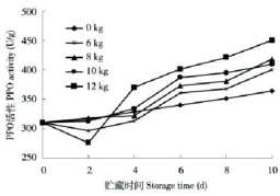 图4不同静重载荷下双孢蘑菇PPO活性随贮藏时间的变化Fig.4ChangesinPPOactivityduringstorageof