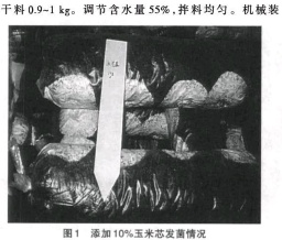 ,找出最佳玉米芯添加量。结果表明:15%(以重量计)以内玉米芯添加量,既不影响产量,又不影响香菇风味。