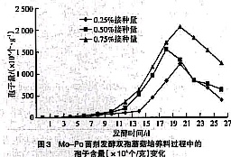 o-Po菌剂发酵双孢蘑菇培养料过程中的孢子含量(×104个/克)变化