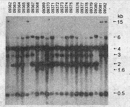 【摘要】本实验采用RFLP技术,对中国东部栗疫病菌(Cryphonectria parasitica)进行了群体遗传结构的研究。313个参试菌株来自10个省(市)的16个群体(子群体),样本分布在北纬24°N—41°N。各菌株的DNA分别用限制性内切酶Pst Ⅰ和EcoR Ⅰ酶切,先后以10个低拷贝DNA探针和1个DNA指纹图谱探针进行了杂交和检测。结果表明,两个探针(pCB29和pMS29.1)的杂交图谱呈单态性;探针pCB19的杂交图谱显示,菌株DNA以PstⅠ酶切的为单态性,以EcoR Ⅰ酶切的则呈多态性;其他7个低拷贝探针的杂交图谱都呈多态性(Pst Ⅰ酶切)、指纹图谱探针的检测结果显示,辽宁凤城群体的菌株与中国东部其他群体的菌株相比,具有更多的限制性杂交片段,菌株间的遗传变异性也更大。