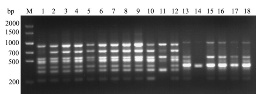 引物 OPU-10 对供试菌株产生的 RAPD 图谱