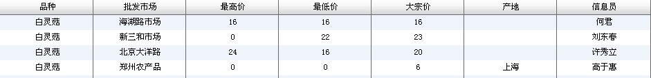 2012.02.27 全国白灵菇批发市场价格行情 来源:中国农业信息网