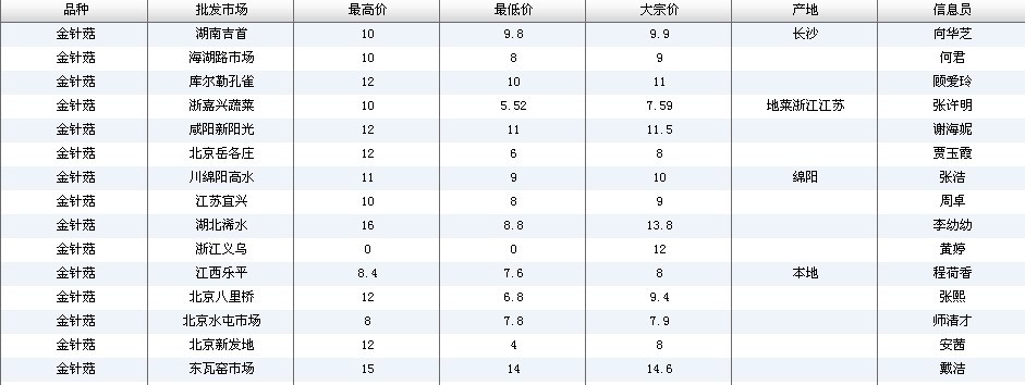 2012.02.27 全国金针菇批发市场价格行情 来源:中国农业信息网