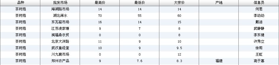 2024年3月18日全国主要批发市场茶树菇价格行情