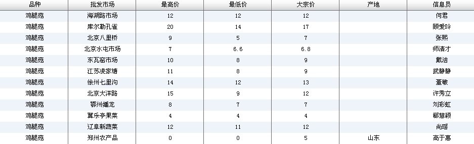 2012.02.27 鸡腿菇全国批发市场价格行情 来源:中国农业信息网
