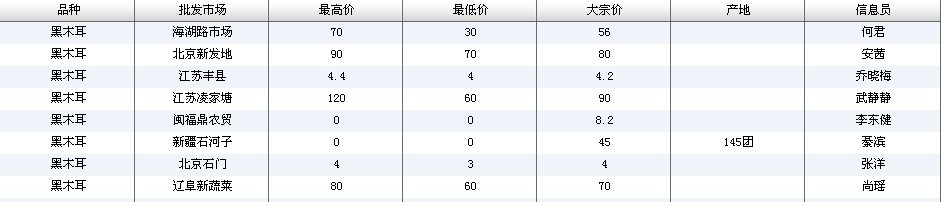 2022年3月18日黑木耳全国批发市场行情